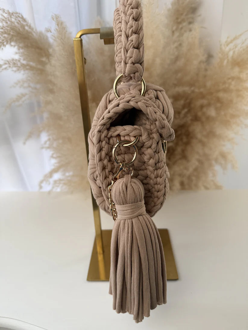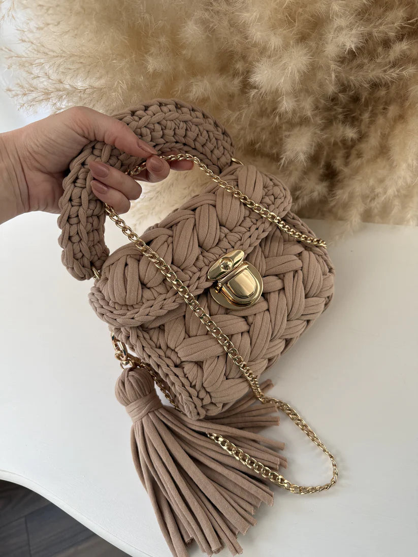 Bag Margareth is a stylish hand bag with a puff stitch crochet design. Its mini size makes it perfect for